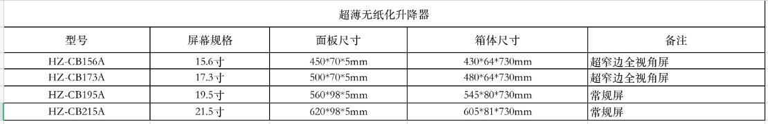 超薄无纸化升降器详细规格参数: