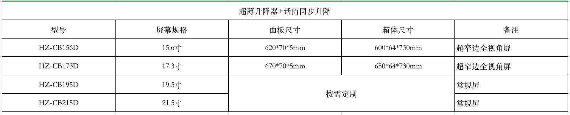 1.满足超薄升降器基本参数;
