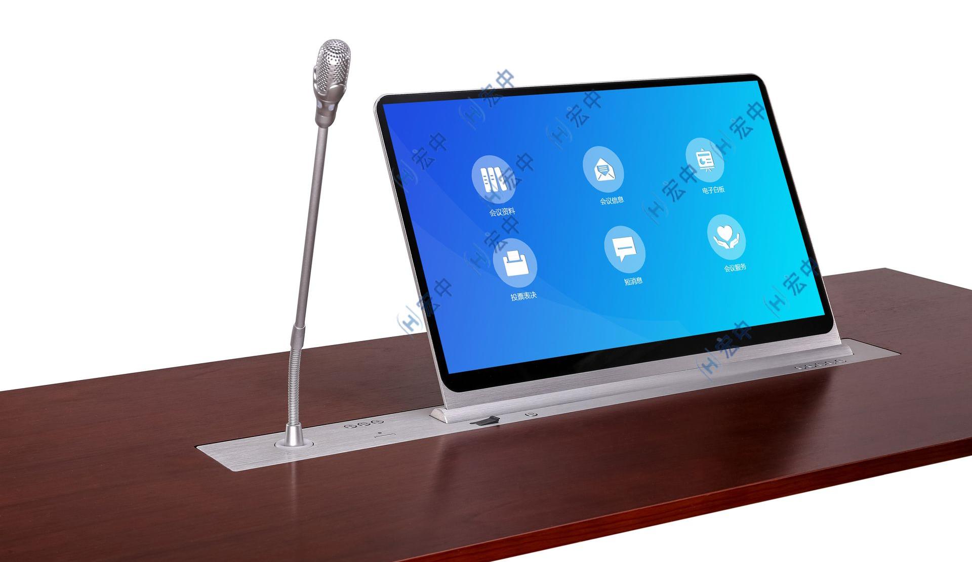 | 1.满足超薄升降器基本参数; 2.话筒与显示器分开升降,各自的控制开关,轻松选择视频会议或音频会议,咪杆带自动捋直功能; 3.含手拉手纯讨论话筒,也可做带视像跟踪功能的话筒。 4.可选背面带10.1寸电子桌牌功能,显示领导单位,姓名,职位等信息,方便各位领导相互认识,对号入座。 |